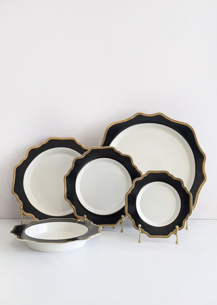 Ohere Luxury Hand-painted BLACK & GOLD Rimmed Porcelain Dinnerware Sets