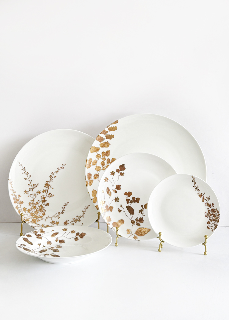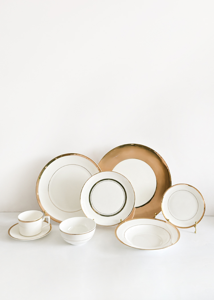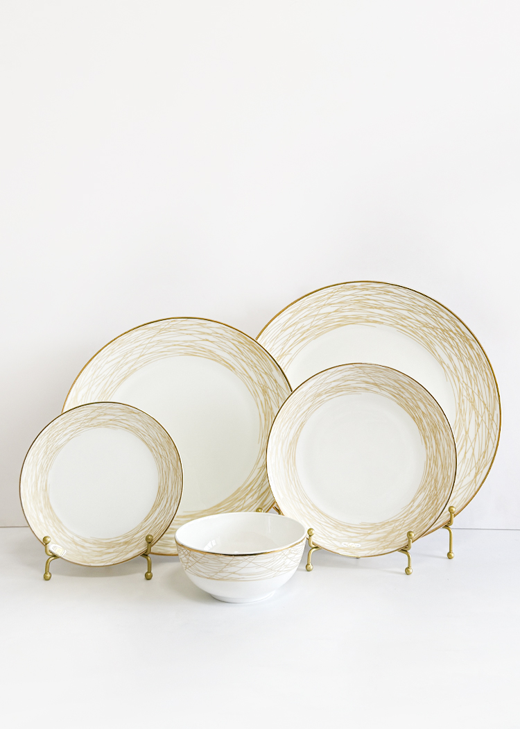 Ohere Luxury Hand-painted GRAY & GOLD Rimmed Porcelain Dinnerware Sets