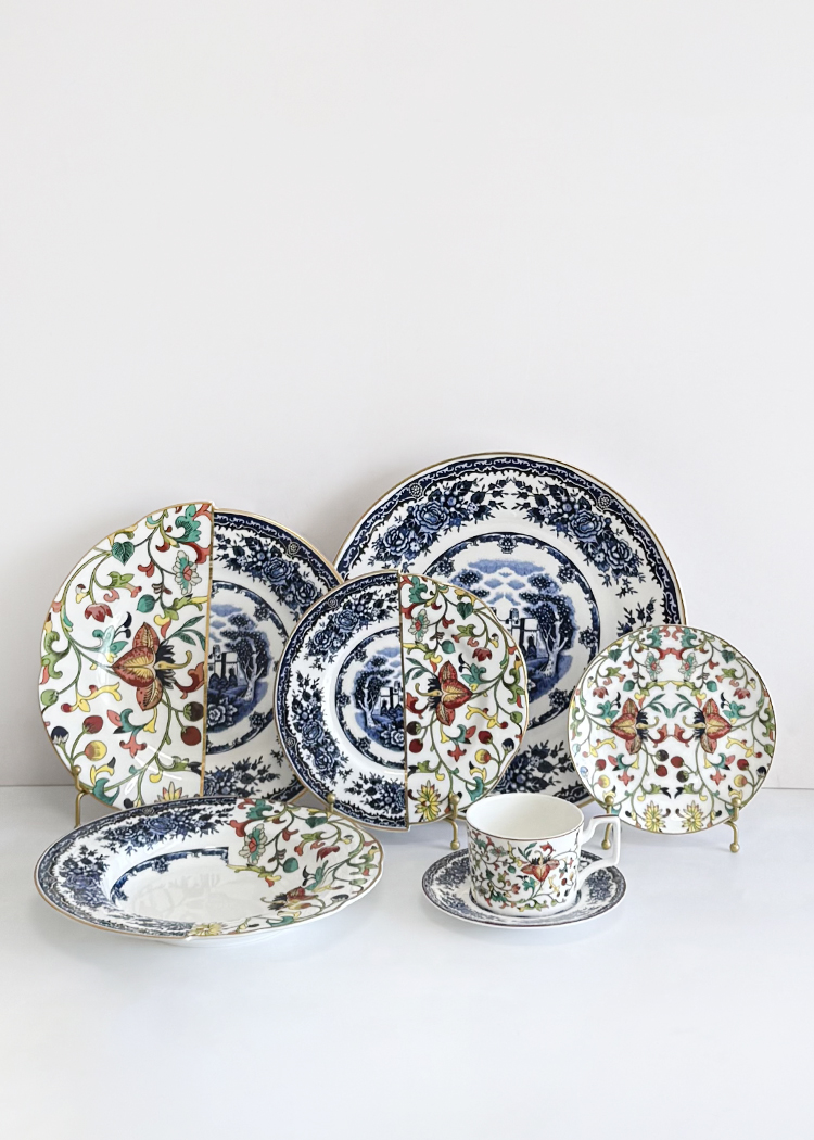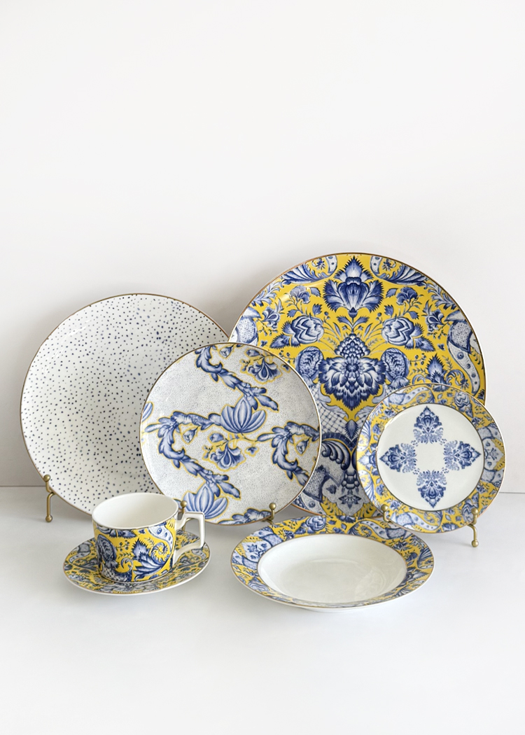 Ohere Blue-And-White Hybrid Bone China Dinnerware Set